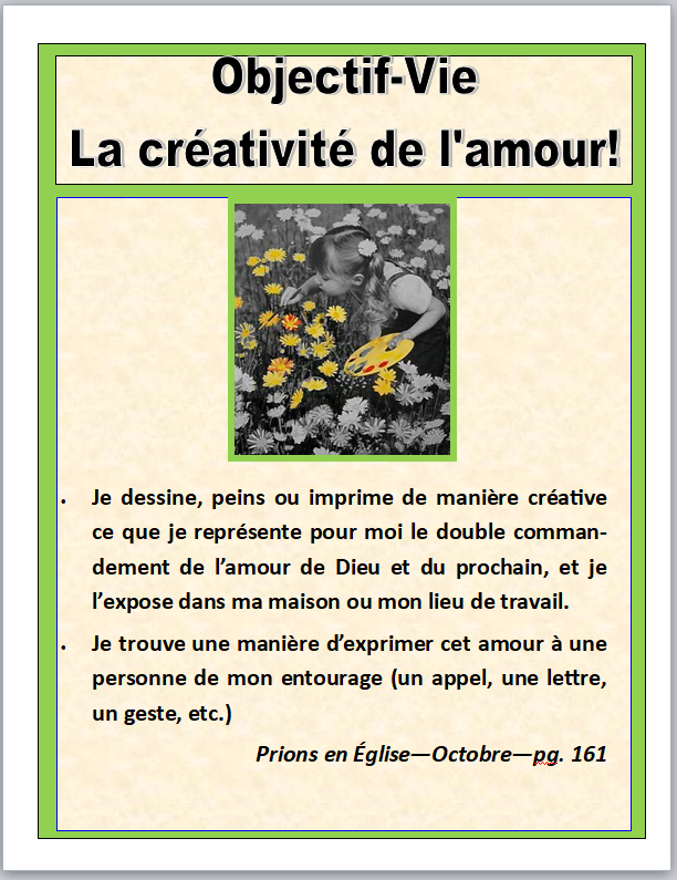 objectif vie la créativité de l’amour